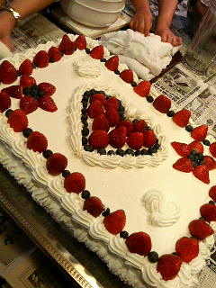 午前中からだったので、前泊をお願いしていたのですが……新郎はお家に帰ってしまったので、独身最後の夜、ゴハンを一緒に食べ、お風呂も一緒になったし、独身最後の朝もゴハンを一緒に食べ、おまけにウェディングケーキの飾りつけまで一緒にしてしまいましたよ。