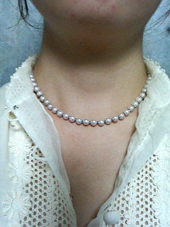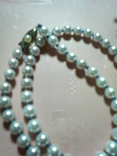 もともと家にあったパールビーズと小さな青いビーズを繋げただけなのですが、なかなかに満足のいく仕上がりになりました。